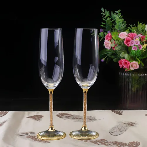 ¿Para qué sirve Copas de champán Copas de champán de cristal con base de metal con piedras de cristal, juego de 2 flautas de 8 onzas, juego de 2 flautas?
