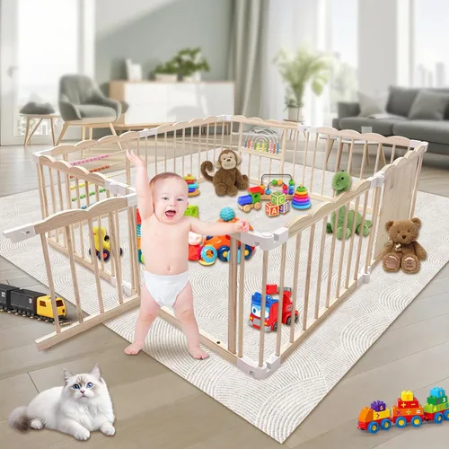 Materiales de alta calidad: el corralito de madera para bebés está hecho de madera de pino natural y está hecho de materiales no tóxicos, inodoros y libres de bisfenol A. Se selecciona cuidadosamente a mano y pulido profesionalmente para garantizar un ambiente suave y sin columna vertebral, proporcionando un ambiente seguro, saludable y cómodo para tu bebé Plegable y fácil de montar: corralito para bebés y niños pequeños, un diseño plegable y a presión, que se puede montar en su forma y tamaño personalizados de acuerdo con el diseño de su habitación y los requisitos de espacio. Se puede plegar muy pequeño cuando no está en uso, por lo que es fácil de almacenar y mover Diseño cuidadoso y seguro: el corralito para bebés tiene una cerradura a prueba de niños que garantiza la seguridad del bebé mientras juega y evita que se atasquen o se gateen. La altura y el espacio razonables de la cerca pueden evitar que los brazos y las piernas del bebé se atasquen Área de juego segura para el espacio grande: el corralito para bebés tiene un tamaño suficientemente grande, que no solo proporciona un espacio dedicado y amplio para que los bebés jueguen, sino que también permite a las madres liberar temporalmente sus manos Atención: El proceso de crecimiento de cada bebé requiere nuestra cuidadosa atención. Los padres deben supervisar y proteger cuidadosamente