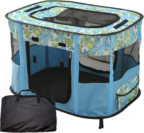 Bolígrafos de juego para cachorros: hechos de tela Oxford de buena calidad y tela de malla, es fuerte, duradero, transpirable y fácil de limpiar. Corralito portátil para perros: corralito para perros dentro de un gran espacio interno para múltiples mascotas. que puede acomodar las necesidades diarias de las mascotas. Corralito plegable para perros: fácil de instalar, no te causará ningún problema. Corralito para mascotas totalmente cerrado: la tela es suave y cómoda, tela Oxford 300D impermeable y malla fuerte negra, malla abierta de 360 grados que proporciona una visión clara del entorno. que es transpirable y resistente a desgarros y mordeduras. 【Bolígrafo de juego para mascotas】 Puede hacer la caja de parto de gatos, sala de partos. Gran tienda de campaña para conejos, perros, gatos y otros animales pequeños. Se puede instalar en tu césped, jardín o cualquier habitación de tu casa.