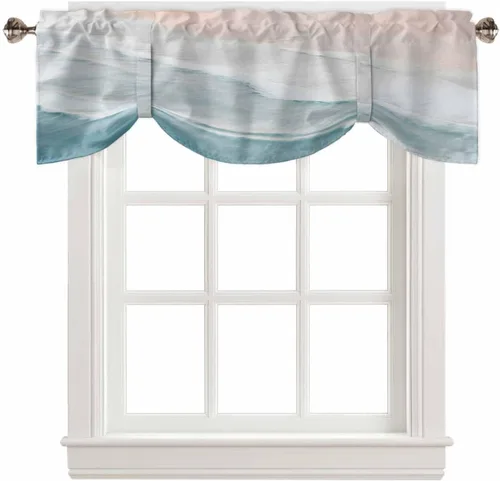 Cenefas de amarre de playa para ventanas - 54 x 18 pulgadas/53.9 x 17.7 in. Las cortinas de cocina se adaptan a la mayoría de ventanas estándar, especialmente a las ventanas de pleno sol. Cenefa de cocina de alta calidad, suave y duradera Las cortinas cortas para cocina están hechas de material de poliéster, que es suave al tacto, con un exquisito diseño de patrón y tejido de alta densidad, que no se rompe ni decolora fácilmente, y puede soportar la luz solar a largo plazo. Fácil de colgar, no requiere herramientas. Las cortinas para sala de estar vienen con bolsillos para barra de 3 pulgadas para acomodar barras de cortina decorativas básicas y deslizarse fácilmente en las tuyas. Cenefa de amarre, fácilmente ajustable Mide la distancia desde la parte superior de la barra hasta la caída máxima que desees, luego comienza a doblar la tela, y cuando se alcance la longitud deseada, ata las cortinas cortas para ventanas pequeñas con los lazos y cuélgalas. Buen rendimiento: filtrado de luz y privacidad Las cortinas de cocina pueden bloquear el resplandor de la luz solar y las luces de la calle, pero al mismo tiempo permiten que la luz natural entre en la habitación y bloquean la vista de vecinos y transeúntes al aire libre, protegiendo tu privacidad. Cenefas de granja para ventanas - Decora cualquier ventana Los paneles de cortina de ventana se pueden utilizar como cortinas de dormitorio, cortinas de baño, cortinas de puerta para ventana de puerta, cortinas de cafetería, cortinas de ventana de cocina, cortinas de armario, cortinas de guardería, cortinas de ventana de sótano y mucho más. Regalo cálido para familiares y amigos Las cortinas para sala de estar se pueden regalar para Navidad, Halloween, Día de la Independencia, Día de San Patricio, Pascua, Acción de Gracias, Día de San Valentín, cumpleaños, inauguración de la casa, fiestas, bodas, aniversarios y mucho más. Persianas lavables a máquina, fáciles de cuidar Las cortinas y cenefas son lavables a máquina y a mano, no se arrugan fácilmente y no requieren planchado.