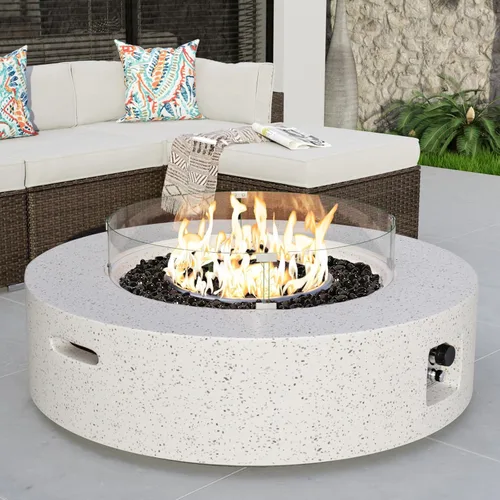COSIEST mesa de café con fogata a propano para exteriores con base redonda de 40.5 pulgadas de terrazo blanco, patio calefactor, certificada,