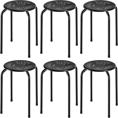 Costway Daisy taburetes redondos de metal apilables sin respaldo, para cocina, jardín y sala (paquete de 6), Metal, Negro