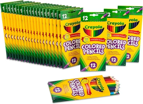 LÁPICES DE COLOR CRAYOLA A GRANEL: Incluye 24 paquetes de lápices de colores Crayola (cada uno con 12 colores Crayola Colors). LÁPIZ DE COLORES PARA NIÑOS: Estos lápices de colores son perfectos para fomentar la creatividad de los estudiantes durante los proyectos de arte, permitiendo una amplia gama de expresiones y técnicas artísticas. Pre-afilado y duradero: los núcleos suaves no se rompen fácilmente, y las puntas preafiladas están listas para su uso al sacarlas de la caja. Suministros para el regreso a la escuela: los lápices de colores Crayola son un artículo imprescindible en cada lista de suministros escolares. Son una gran opción para que los maestros se abastezcan de suministros para el aula de la escuela primaria. 12 colores CRAYOLA: los colores de Crayola incluyen rojo, rojo naranja, naranja, amarillo, verde, amarillo verde, azul cielo, azul, morado, negro, marrón y blanco. Regalo para niños: inspira a los jóvenes artistas a expresarse creativamente con el regalo de los lápices de colores de Crayola Suministros para aulas a granel: Abastécete de artículos imprescindibles para el aula del profesor, incluyendo paquetes a granel de crayones, marcadores y mucho más. Ideal para jardín de infantes, preescolar, escuela primaria, salas de arte y proyectos grupales.