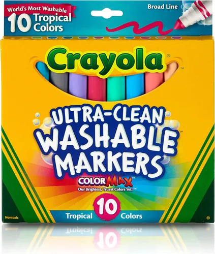 COLOR MAX: Crayola se dedica a ayudar a los niños de todas las edades a liberar el poder de la imaginación de maneras coloridas. Es por eso que desarrollamos color max: una variedad de innovaciones para revitalizar los productos Crayola con los colores de la más alta calidad disponibles hoy en día COLORES TROPICALES: ¡Los marcadores lavables Crayola Ultra-Clean te traen colores brillantes y tropicales en un marcador lavable para niños! Los marcadores Crayola Ultra-Clean lavables se lavan fácilmente de la piel, la mayoría de la ropa lavable e incluso de paredes pintadas PROYECTOS CREATIVOS: Ya sea que estés creando una obra maestra paisajística o decorando camisetas con tu tropa de Girl Scouts, Crayola tiene los marcadores, bolígrafos, marcadores para niños, pinturas, lápices de colores y crayones que necesitas para hacer que tu proyecto destaque con colores audaces y brillantes Los marcadores de colores de Crayola están disponibles en una variedad de opciones, tales como líneas anchas, líneas finas, purpurina, metálicos, sellos de emojis y más. Para los artistas más pequeños, ofrecemos marcadores lavables, y para el aula, también vendemos marcadores en paquetes a granel Desde marcadores a tiza para el pavimento: Marcadores para niños o adultos, pinturas lavables, crayones brillantes, incluso marcadores perfumados, ¡lo tenemos todo! Crayola les da a los niños el poder de expresar todo lo que los inspira mientras exploran, descubren, juegan, fingen, crean y sueñan