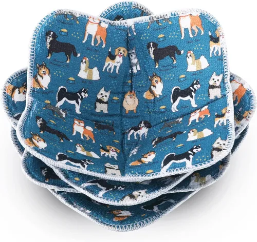 Herramientas de cocina multiusos: estos soportes para tazones de microondas son prácticos y atractivos, evitando que el tazón entre en contacto directo con la mesa, protegiendo así la superficie de la mesa de platos calientes y protegiendo tus manos de quemaduras; y pueden sostener el tazón para sopa, arroz, pasta y mucho más Material resistente y reutilizable: el soporte para tazón caliente está hecho de microfibra de poliéster y materiales de esponja, que es lo suficientemente confiable y resistente para que lo uses durante mucho tiempo, no se decolora ni deforma fácilmente, mantiene tus manos y cuencos seguros y te ofrece más comodidad Protege bien tus manos: nuestro soporte para cuencos de microondas es una buena opción para sostener platos calientes y fríos, mientras mantiene tus manos cómodas, lo que los hace suplementos multifuncionales para cualquier cocina familiar, lo que te ofrece una buena experiencia de uso Juego de soportes para cuencos para microondas: recibirás 4 soportes para platos de microondas impresos con bonitos patrones de perro, que tienen como objetivo proporcionarte una manera simple y segura de lidiar con tazones calientes, ollas y platos, y el diseño del perro añade un ambiente animado a tu cocina; cantidades suficientes para satisfacer tus necesidades de cocina familiar Tamaño adecuado: el tamaño de cada soporte para alimentos es de aproximadamente 19 x 19 x 9 cm / 7.5 x 7.5 x 3.54 pulgadas, que es adecuado para la mayoría de cuencos domésticos comunes y se puede combinar bien con el cuenco o colocar en el microondas fácilmente, y el soporte de arroz se puede apilar juntos para almacenar sin ocupar demasiado espacio
