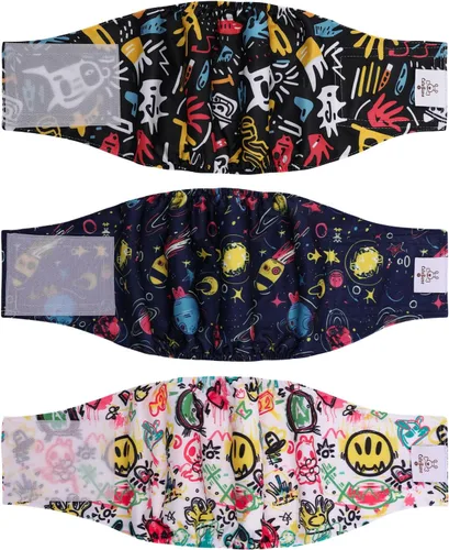 Los pañales para perro macho de CuteBone están diseñados pensando en la comodidad y durabilidad, son perfectos para cachorros no entrenados y para la incontinencia de los perros. Estos pañales suaves para perros ayudan a tu mascota a mantenerse limpia y seca entre sus paseos. Los pañales lavables y reutilizables son amigables con el medio ambiente, económicos y fáciles de lavar. El diseño de banda abdominal permite que tu mascota se mueva con más libertad y es muy fácil de poner y quitar. Cuenta con un revestimiento exterior impermeable para evitar fugas y posibles daños a tapetes, alfombras, sofás, etc., y con cierres de velcro fáciles de poner para un ajuste ceñido. Los pañales para perro macho de CuteBone no solo cuentan con almohadillas cosidas súper absorbentes, sino que también tienen un bolsillo donde puedes agregar almohadillas adicionales en caso de mayor incontinencia. También cuentan con un cómodo forro interior de secado rápido que no molestará a tu perro. Cada paquete viene en 3 bonitos diseños, ideales para hogares con varias mascotas, ¡deja que tu mascota destaque entre la multitud! Y como están confeccionados con costuras precisas y tela de alta calidad, pueden soportar lavados frecuentes y el uso diario. Disponibles en una variedad de tallas: XS, S, M, L, siempre puedes encontrar el que se adapte bien a tus perros. Antes de realizar el pedido, mide la cintura de tu perro justo por delante de las patas traseras para que se ajuste mejor.