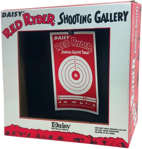 Genuine Daisy Red Ryder shooting Gallery. Retro 1940S style packaging that harkens back to the days of the wild West. Ride the range with Red Ryder! 993164-302 3164 shooting Gallery target box - inside or outside, the Daisy Red Ryder shooting Gallery helps you improve accuracy while providing hours of fun. Plus, it's easy to use. Simply punch out the perforated front portion of the box, hang a target (included) put on your shooting glasses and start shooting. Fun with a group or by yourself - in the backyard or basement. Kit includes: 25 assorted Red Ryder shooting Gallery targets.