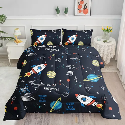 ¿Para qué sirve Datura home Juego de edredón con estampado de galaxia, astronauta y cohete espacial con 1 edredón y 2 fundas de almohada para dormitorio de niños?