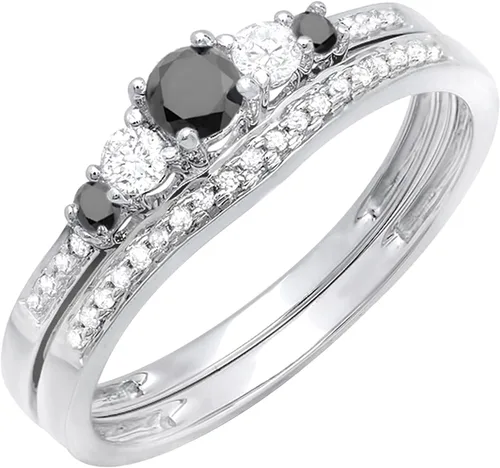 Dazzlingrock Collection Juego de anillos de compromiso de oro blanco y negro de 10 quilates con diamantes redondos de 0,45 quilates (quilates)