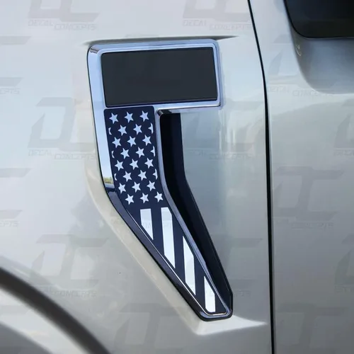 Compatible con F150 (2021-2024) Precortado para adaptarse a insignias de guardabarros OEM. No es necesario recortar Proporciona un toque sutil y limpio a tu camioneta Recorte para permitir que los colores originales del emblema se muestren. El color de fondo dependerá del color original del emblema. Cada kit incluye dos detalles de calcomanías, para los lados del conductor y del pasajero. Se puede quitar en cualquier momento sin dañar el emblema Nota: solo gráfico, emblema no incluido