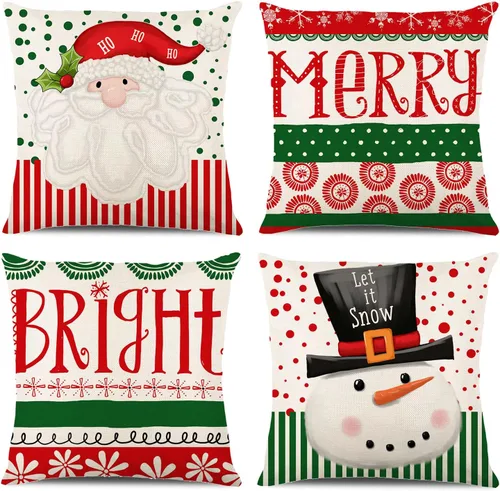 poliéster Juego de fundas de almohada: este juego incluye cuatro fundas de almohada navideñas de 18 x 18 pulgadas, sin rellenos ni rellenos, y el patrón solo está en la parte delantera sin impresión en la parte posterior. Decoración navideña Se componen de muchos elementos de Navidad, como árboles de Navidad, renos, copos de nieve. Este diseño único de elementos y decoraciones navideñas se complementan entre sí, es una gran adición a la decoración navideña. Material Estas fundas de almohada de Navidad están hechas de material de lino transpirable de alta calidad, con patrones claros, costuras uniformes, no se decolora ni abrasión, se pueden utilizar al aire libre. Fácil de poner: el cierre de cremallera oculto hace que la apariencia sea más elegante y fácil de meter tu almohada/relleno en esta funda. Múltiples usos: puedes regalarlos a tu familia y amigos. También se pueden utilizar como decoración en muchas ocasiones, en hogares, salas de estar, oficinas, dormitorios, hoteles y cafeterías. Aporta un ambiente cálido y encantador a ti y a tus amigos.