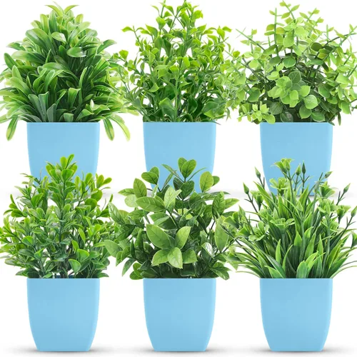 Der Rose 6 paquetes de plantas falsas pequeñas, mini plantas artificiales de interior para el hogar, granja, baño, decoración de estantes