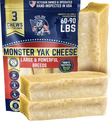 Enriquecimiento de larga duración diseñado para un uso gradual y seguro: ¿Cansado de masticables que se rompen en pedazos afilados? Cada queso masticable de yak está fabricado con una densidad óptima que resiste la rotura frágil, desgastándose gradualmente en lugar de astillarse como alternativas más baratas. Los masticadores ligeros disfrutan de 4 a 7 días, los masticadores moderados de 2 a 4 días, y los masticadores agresivos obtienen de 1 a 3 horas de compromiso enfocado que redirige el comportamiento destructivo hacia una estimulación mental intencionada. Siempre supervise y proporcione agua dulce. 100% libre de olores para el trabajo desde casa, apartamentos y hogares de varios perros: a diferencia de los palitos que llenan tu hogar de olores, nuestra fermentación del Himalaya produce cero olor durante o después de masticar. Perfecto para profesionales que trabajan desde casa que necesitan perros ocupados durante videollamadas, habitantes de apartamentos o hogares con varios perros. Cero residuos grasos en los muebles y cero olor al respirar. La fermentación también elimina la lactosa mientras concentra un 65% de proteína, lo que los hace suaves con estómagos sensibles y sin desorden. CUATRO INGREDIENTES, INSPECTADOS A MANO POR UN EQUIPO DE VETERANOS EN LOS ESTADOS UNIDOS: Cada masticable contiene solo leche de yak, leche de vaca, sal y jugo de lima. Nada más. Sin granos, sin gluten y libre de aditivos, conservantes o rellenos que utilizan las importaciones del mercado masivo. Mientras que los competidores se saltan el control de calidad, inspeccionamos a mano cada masticable en nuestro almacén de Estados Unidos antes de que llegue a tu casa. La receta tradicional del Himalaya elimina la lactosa durante la fermentación mientras entrega proteínas de alta densidad y calcio. Enriquecimiento versátil que apoya naturalmente la salud dental: úsalo durante el trabajo desde casa para un tiempo de enfoque tranquilo, en la caja durante el entrenamiento, en paseos en automóvil para reducir la ansiedad, en visitas al veterinario o como rituales de relajación nocturna. La masticación extendida raspa la placa y el sarro mientras refresca el aliento. 100% digerible a diferencia del cuero crudo o los huesos que corren el riesgo de bloqueos. Seguro para cachorros de 4 a 6 meses una vez que se desarrollan los dientes adultos. Se combina con comederos de rompecabezas, tapetes para lamer y juguetes de golosinas. Gire con cuernos de alce y palitos de matón. MONSTER 3-PACK PARA RAZAS GRANDES 60-90 LBS — Golden Retriever, RoTTWEILER, GSD: Tres masivos masticables de queso yak que proporcionan semanas de enriquecimiento premium para Golden Retrievers, Pastores Alemanes, Rottweilers, Dobermans y razas poderosas de 60 a 90 libras. Ahorro de paquetes múltiples para perros que necesitan más masticar. Cada Monster ofrece sustancialmente más compromiso que los tamaños estándar. Microondas cada protuberancia para cero residuos. Completa tu rotación con cuernos de alce enteros y palos de matón.