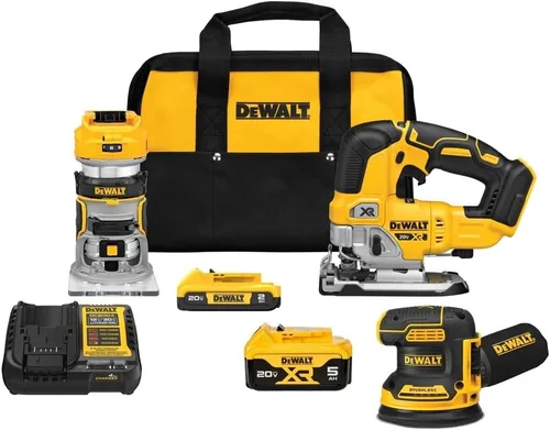 Este kit de carpintería DEWALT 20V MAX* viene con tres herramientas XR sin escobillas, cargador, bolsa, una batería de 5.0Ah y una batería compacta de 2.0 Ah. El enrutador compacto DCW600 tiene una base fija de plástico y LED duales que ayudan a iluminar la superficie de trabajo y proporcionan una visibilidad superior de la broca. La sierra caladora DCS334 compone equipada con una acción orbital de 4 posiciones que le permite ajustar para un corte óptimo de una variedad de materiales. DCW210 5 pulgadas La lijadora orbital tiene un dial de velocidad variable para un control de velocidad máximo en la mayoría de las aplicaciones.