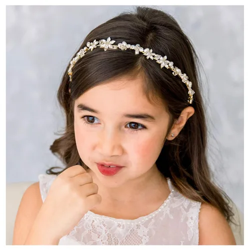 SWEETV Diadema dorada para niña de las flores para boda, diadema floral de cristal para niñas, accesorios para el cabello de princesa para fiesta de