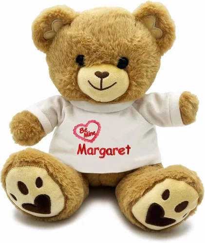 Cuenta con un suave oso de peluche con camisa blanca con mensaje personalizado bordado. Medidas del oso: 12 pulgadas Materiales: mezcla de poliéster de felpa; solo limpieza localizada. Dibsies Se personalizará con un hermoso bordado de nombre como se muestra. Hasta 9 letras como máximo. No hay personajes especiales/extranjeros, por favor.
