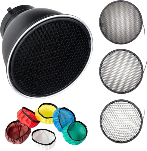 Difusor reflector estándar de 7 pulgadas/7.1 in con rejilla de panal de 20/40/60 grados para montaje Bowens luz de estudio estroboscópica flash y