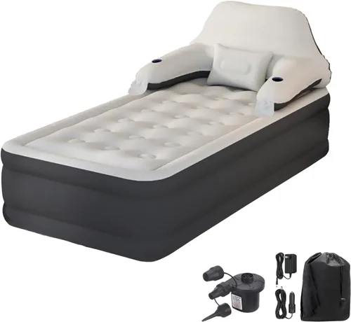 DIMAR GARDEN Colchón de aire tamaño individual con cabecero y bomba, colchón hinchable cama inflable con almohadas