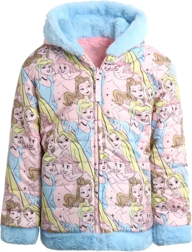 Disney Chaqueta reversible de princesa para niña, abrigo acolchado con capucha y forro de piel sintética (2T-16)