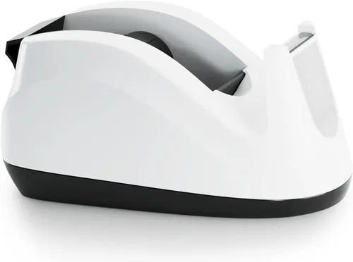 Dispensador de cinta adhesiva de escritorio con base pesada y antideslizante, dispensación con una mano (Blanco)