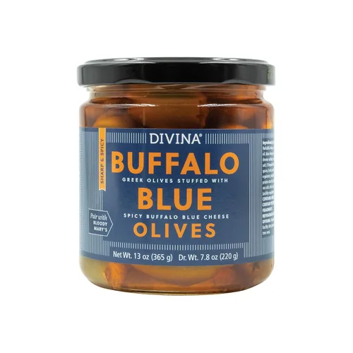 Delicioso aperitivo picante: prepárate para dejarte llevar por la audaz especia de búfalo en estas divertidas y únicas aceitunas Bocadillo saludable y limpio: para antojos salados, combínalo con tocino, cabernet, sauvignon, pale ale, apio o palitos de zanahoria DELICIOSAS IDEAS DE RECETAS: freír Panko y servir con salsa de búfalo o rancho; picar y mezclar en una ensalada fría de pasta de búfalo con pollo a la parrilla o brocheta con verduras en escabeche y tocino para decorar un Bloody Mary Ingredientes limpios y sencillos: vegano, sin OMG y sin gluten Productos de calidad: las aceitunas y antipasti Divina representan un sabor auténtico, trazabilidad y excelente calidad. El nombre Divina es el estándar de oro en responsabilidad y especialidades mediterráneas tradicionalmente preparadas