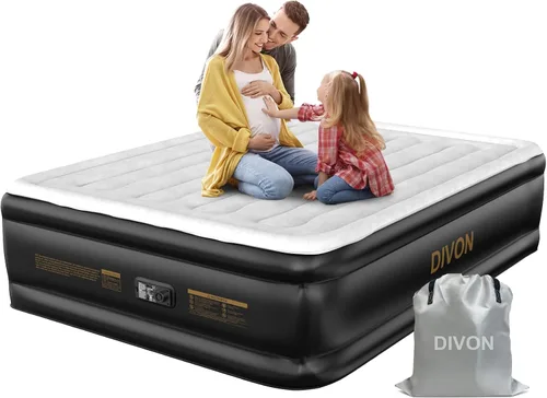 DIVON Colchón de aire Queen con bomba integrada, colchón inflable con patrón de ondas en 3 minutos, colchón inflable rápido de 18 pulgadas, colchón
