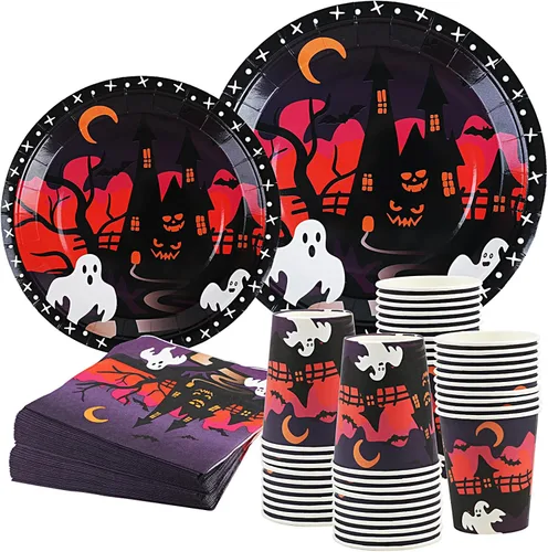 DIYASY Halloween Plates and Napkins Party Supplies, Paper Plates and Cups Sets Disposable Dinner Dessert Plate Bulk Black Cute Appetizer Plate for