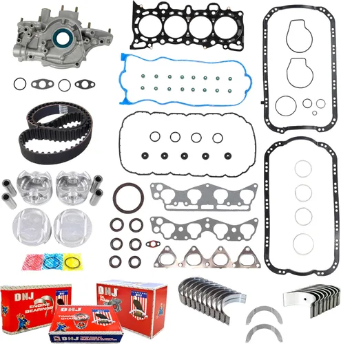 ESTE KIT INCLUYE: Juego de pistones, juego de anillos de pistón, juego de cojinetes principales, juego de cojinetes de biela, juego completo de juntas/sellado, arandela de empuje, correa de distribución, bomba de aceite Compatible con: Honda / Civic 96-00, Civic del Sol 1.6L L4 SOHC aspirado naturalmente D16Y7 NOTAS DE AJUSTE: con bomba de aceite y correa de distribución o kit de sincronización, si corresponde, Kit maestro Está seguro de recibir una pieza de calidad probada en todo el mundo del Kit de Reconstrucción de Motor Master con ajuste y rendimiento de calidad OE. IMPORTANTE: Este kit de motor es de tamaño estándar en todos sus componentes. Si necesita pistones de gran tamaño, anillos de pistón, rodamientos de biela o rodamientos principales, envíenos un mensaje antes de realizar el pedido, indicando el tamaño correcto que necesita, para que nuestro equipo de servicio al cliente pueda confirmar la disponibilidad. Si no recibimos comunicación de usted, todo se enviará en TAMAÑO ESTÁNDAR por defecto