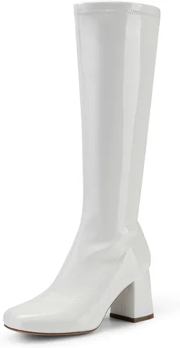DREAM PAIRS Botas Gogo para mujer, punta cuadrada, botas altas hasta la rodilla para mujer