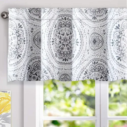 poliéster Incluye: una cenefa. Extremadamente suave al tacto. Hecho de 100% poliéster, importado. Diseño y estilo: el diseño de estampado de medallón con su patrón redondo se ve elegante y rústico. Con un patrón delicado, la cenefa Lucia le da a la cortina un toque moderno de un aspecto suave y simple. El color de fondo es gris y blanco. Esta cenefa térmica versátil forrada proporciona una manera fácil y económica de añadir color y estilo a cualquier habitación de tu hogar. Versión mejorada y sirve bien: esta cenefa, con práctico forro trasero y material suave, actualiza el aspecto de tu hogar al instante de una manera única. Es extremadamente versátil y animará cualquier decoración del hogar. Cuélgalo en tu dormitorio, sala de estar, comedor, cocina, habitación de las niñas, guardería o cualquier habitación que necesite eso perfecto. Tamaño y tipo de cabecera: 52 pulgadas de ancho x 18 pulgadas de largo + 2 pulgadas de cabecera. El bolsillo para barra de 3 pulgadas se desliza fácilmente en tu barra de cortina para una instalación rápida. Instrucciones de cuidado: lavar a máquina en frío en un ciclo suave en una bolsa de malla, utilizar solo blanqueador sin cloro cuando sea necesario. Secar en secadora a baja temperatura, si es necesario, planchar en frío.