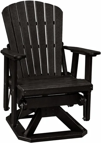 SMOOTH SWIVEL AND GLIDE MOTION: Enjoy gentle back-and-forth gliding combined with full 360-degree swivel, perfect for relaxing, socializing, or taking in your outdoor surroundings from any angle ERGONOMIC ADIRONDACK COMFORT: Designed with a contoured seat, wide armrests, and a supportive 26-inch high slat fan back for superior comfort during extended outdoor lounging ALL-WEATHER HDPE CONSTRUCTION: Made from durable high-density polyethylene (HDPE) that resists fading, cracking, splintering, and moisture for long-lasting outdoor performance LOW MAINTENANCE AND EASY CARE: No painting, staining, or sealing required—simply clean with soap and water to keep your chair looking like new year-round VERSATILE AND DURABLE DESIGN: Sturdy 70 lb build ideal for patios, decks, porches, gardens, and poolside use, offering a stylish and reliable seating solution for any outdoor space