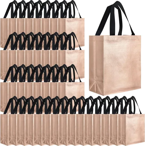 Características: Uso fiable: Las bolsas reutilizables con asas están hechas de material de calidad, que es confiable de usar, resistente y firme, no se decolora ni rompe fácilmente, se puede aplicar durante mucho tiempo. Bonito regalo: Las bonitas bolsas reutilizables pueden ser una buena opción de regalo para enviar a tus familiares, amigos, familiares y más, sentirán tu consideración. Especificaciones: Material: telas no tejidas y película de aluminio Color principal: como se muestra en la imagen. Tamaño: aprox. 10.0 x 8.1 x 4.7 in/ 10 x 8 x 4.7 pulgadas. El paquete incluye: 80 bolsas de regalo. Notas: Medición manual, puede haber ligeras diferencias en el tamaño. El color puede variar ligeramente debido a las diferentes pantallas.