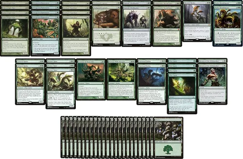 Esta es una baraja de 60 cartas, mono verde hydra. Esto es perfecto si te gusta atacar con enormes criaturas pisoteadoras, que puedes invocar notablemente rápido. El mazo se centra en la aceleración de maná a través de Overgrown Battlement, Gatecreeper Vine y Axebane Guardian. La baraja puede entonces convocar a cualquiera de tus enormes criaturas hidra rápidamente (se sabe que la baraja convocó múltiples hidras de 12/12 en la curva 5). ¡Sumérgete con estas enormes hidras para ganar! La baraja también cuenta con un puñado de hechizos de eliminación, sorteo de cartas, así como poderosas habilidades de monstruosidad en varias hydras. ¡Esta baraja es increíblemente fuerte, divertida de jugar y dominante!