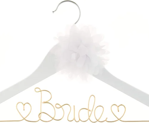 Ella Celebration Bride to Be - Colgador de madera y alambre para vestidos de novia, vestidos (blanco con oro claro)