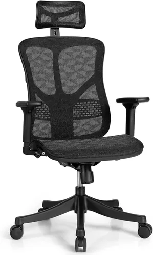 Features: Adjustable 3D armrest and 2D headrest to perfectly rest your arm and neck Easy-to-operate buttons facilitate the adjustment of seat height and back tilting Angle 90° -130° tilting backrest for working, reading or relaxing 360°swivel casters roll quietly and smoothly on any floor Mesh backrest with adjustable lumbar support reduces back pressure Wide breathable mesh seatfor endless comfort Solid base and high quality gas rod for exceptionalstability Specifications: Color: Black Material: Nylon, Mesh,Sponge, PP Overall Dimension: 27" x 27" x 44.5"-48" (L x W x H) Adjustable Lumbar Support/ Headrest: 1" Adjustable Seat/Armrest/Headrest/Height:17''-20''/3''/1'' Adjustable Armrest(From Front to Back): 1.5'' Rotatable Armrest/Headrest: 0-40° Net Weight:38.5lbs Weight Capacity: 330lbs Package includes 1 x Mesh Office Chair 1 x User Guide
