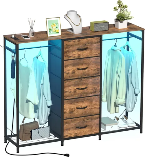 Pregunta sugerida sobre Espelism Cómoda para dormitorio con perchero, cómoda de 5 cajones con estación de carga, luces LED, cómoda blanca, estante flexible y espacio ¿Este producto sí me sirve para lo que necesito?