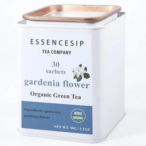 ESSENCESIP - Bolsas de té verde Gardenia orgánico Aroma de flor de Gardenia 30 sobres en lata de té