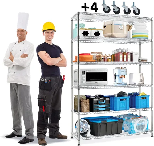 Pregunta sugerida sobre Estantes de almacenamiento resistentes de 6 niveles, estantes ajustables NSF para garaje con ruedas y pies ajustables, estantes independientes ¿Este producto sí me sirve para lo que necesito?