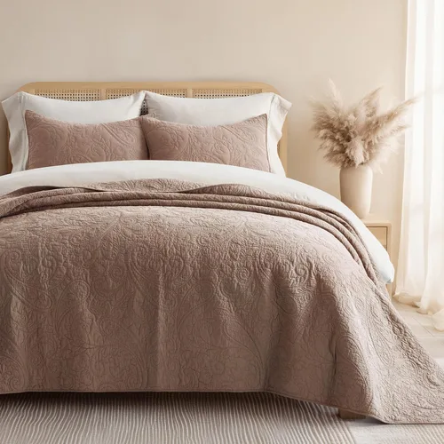 EVERGRACE Juego de Edredón de Paisley 100% Algodón, Juego de 3 Piezas Tamaño Queen – Colcha Ligera Prelavada con 2 Fundas, Cubrecama Matelasse Suave