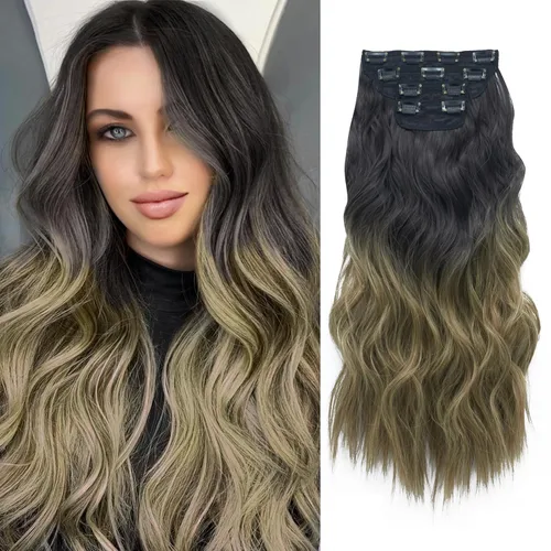 Extensiones de cabello largo ondulado y rizado con clip, extensiones de cabello sintético para mujer, 20 pulgadas, 4