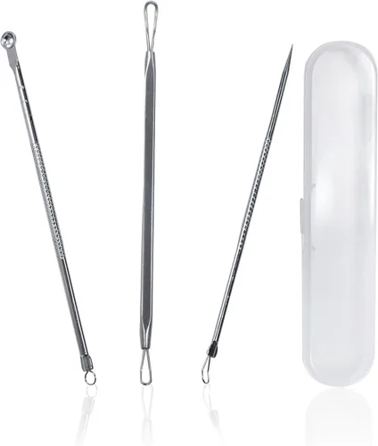 Wozoohyi Extractor de puntos negros, 3 piezas, herramienta para reventar espinillas, herramienta extractora de comedones para acné y manchas de espinillas, 304, extractor de poros de acero inoxidable