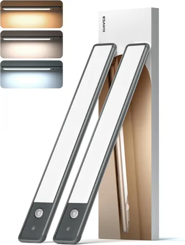 EZVALO Iluminación bajo gabinete, luz LED recargable de 98 LED con sensor de movimiento para interiores, luces magnéticas regulables para armario