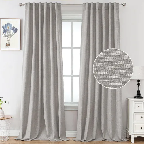 FantasDecor Cortinas texturizadas de lino de 84 pulgadas de largo, cortinas para sala de estar, con pestaña trasera, bolsillo para barra, reducción