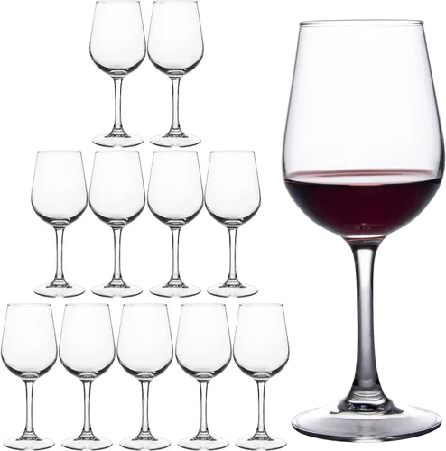 Juego de copas de vino perfecto para todos los días: este juego de 12 copas de vino satisfará completamente tus necesidades diarias o pequeñas de uso en fiestas. Nuestras copas de vino están diseñadas y listas para adaptarse a una variedad de bebidas, y tienen capacidad para hasta 12 onzas, vino blanco, tinto o tu bebida favorita. Juego de copas de vino extra fuertes: hechas de vidrio totalmente templado que proporciona resistencia adicional a los golpes para estas copas de vino tinto. Gracias a su durabilidad reforzada, estas copas de vino son especialmente adecuadas para un uso duradero. Copas de vino profesionales para uso en restaurantes o bares: cada una de nuestras copas de vino tiene un tazón de tamaño medio que permite que el vino respire y los bordes cónicos para enfocar el aroma delicado. El tallo bien proporcionado con una base redonda plana no solo ofrece un equilibrio estelar, sino que también completa el aspecto estético. Vidrio superior para cada ocasión: tener un juego de copas universal es económico, conveniente y ahorra un gran espacio en el gabinete. Estas copas de vino universales satisfarán todas tus necesidades. Debido a su diseño totalmente templado y sin costuras, nuestra copa de vino es perfecta para contener bebidas congeladas o vino caliente. Este juego de copas de vino puede soportar el calor del lavavajillas y la presión del agua sin romperse ni agrietarse. Fácil cuidado y un año sin preguntas en nuestras copas de vino: apto para lavavajillas. Respaldamos todos nuestros productos de alta calidad, por lo que ofrecemos un año sin preguntas en todos nuestros juegos de copas de vino. Ponte en contacto con nosotros a través de Amazon y estaremos encantados de ayudarte.
