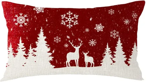 algodón lino Funda de cojín decorativa con diseño de pinos y árboles de reno, copos de nieve, fondo rojo, fondo rojo Material: lino de algodón. Tamaño: 12 x 20 pulgadas, puede haber una pequeña diferencia de tamaño Una funda de almohada, impresión solo en un lado. El relleno no está incluido. Cada funda tiene cremallera invisible. Diseño de personajes Decora tu sofá y ilumina tu sala de estar Estampado colorido, después del lavado, no se decolora, no se pela.