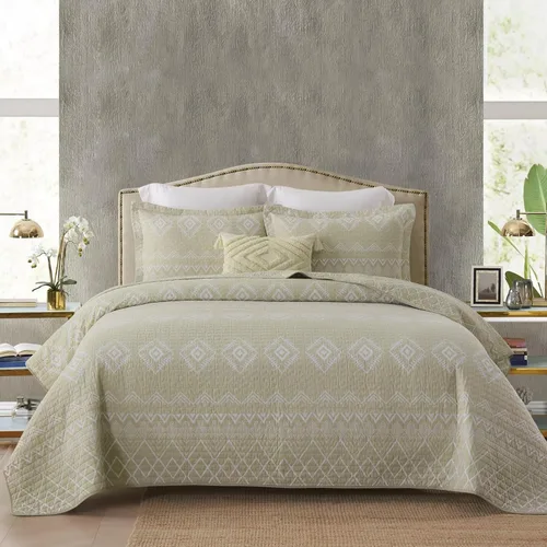 Finlonte Juego de edredones de tamaño Queen, 100% algodón, ligero, bohemio, Queen, color beige, blanco, geométrico, suave, reversible, para cama