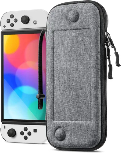 Carcasa rígida de EVA que protege el Nintendo Switch – Modelo OLED (2021) 7.0 pulgadas/Nintendo Switch (2017) 6.2 pulgadas de golpes accidentales, caídas y arañazos. Interior suave que protege el Switch del desgaste diario. Diseño delgado y ligero, no ocupa mucho espacio cuando lo pones en la mochila o bolso. Diseño interno único para evitar todas las caídas de presión en los joysticks. 10 soportes para tarjetas de juego te permiten llevar tus juegos favoritos a todas partes. El cierre doble YKK personalizado es sólido y suave, fácil de guardar y quitar el interruptor. La correa de mano ajustable proporciona un transporte cómodo en cualquier momento y en cualquier lugar. Cremallera completa para máxima protección, perfecta para viajar! Diseñado para hacer que tu consola Nintendo Switch / Switch OLED Model sea aún más portátil y fácil de transportar. Esta funda de transporte se adapta a la consola Switch con ambos Joy-Con conectados.