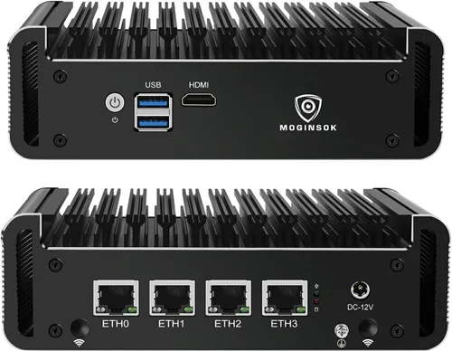 【Firewall profesional MGCN50N】Mini PC MOGINSOK sin ventilador - MGCN50N, un enrutador de firewall profesional silencioso y sin ventilador que te ofrece un entorno de red seguro y cifrado. Soporte multifuncional AES-NI, ESXI, Watchdog, encendido automático, RTC, arranque PXE, Wake-on-LAN CPU y puertos: MOGINSOK Firewall PC MGCN50N- integrado con Jasper Lake Intel Celeron 5095 Quad Cores de 11ª generación Cuatro hilos 2.0GHz hasta 2.9GHz 4MB caché con gráficos Intel UHD, compatible con AES-NI. Con 1* HDMI 2.0. MGCN50N también con ranura de RAM DDR4 dual compatible con 2x16GB DDR4 non-ecc Ram Maximum 2933Mhz y 1xM.2 NVMe/PCIe 3.0x1 2280 ranura SSD y 1x2.5 pulgadas SATA SSD/HDD (máximo 0.354 in) ranura. 【2 RAM DDR4 y 2 ranuras SSD: el dispositivo MOGINSOK Micro Firewall MGCN50N instalado con 8G RAM 128GB NVMe SSD (2 ranuras DDR4 compatibles con 32 GB DDR4 2933 MHz) y 1 ranura M.2 PICE 3.0x1 NVMe, también tiene una 1 ranura MINI PCIE compatible con WIFI/3G/4G. módulo y 1* Configuraciones SATA HDD/SSD de 2.5 pulgadas, puedes instalar tu propio ram y ssd para bricolaje depende de tu aplicación. 【Compatible con SO profesional】Esta ruta de firewall con 4 tarjetas de red Intel i225V velocidad máxima de hasta 2.5 GbE (necesita otro dispositivo como enrutador, cables, etc. también soporta 2.5 Gb) le brinda un uso de red más rápido y profesional (algunos proveedores del sistema tal vez no hayan lanzado controlador compatible para que coincida todavía, sugiere instalar la versión más reciente de los siguientes sistemas: compatible pf-Sense plus 23.0X o CE 2.7.x, OPNsense 22.1, OpenWrt, ROS7, ESXI , Proxmox, CentOS, etc.). Calidad con garantía: si tienes alguna pregunta sobre el dispositivo MOGINSOK Firewall MGCN50N, no dudes en ponerte en contacto con nosotros (si quieres obtener la última actualización de la biografía, puedes enviarnos un mensaje a través de Yaxa). Ofrecemos 12 meses de garantía para él y responderemos sus preguntas dentro de las 12 horas (durante días laborables).