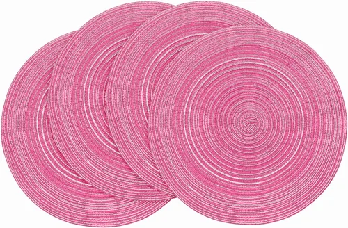 Color: Los manteles individuales circulares presentan un encantador rosa rústico. Los hilos transparentes brillan sutilmente, añadiendo un toque de brillo bajo la luz. Flexibilidad: Eleva tu mesa de comedor o té con estos manteles individuales, ideales debajo de tazas, platos, vajillas, jarrones o ceniceros. Apto para uso en interiores o exteriores, ofrecen opciones versátiles de decoración. Rango: Perfecto no solo para uso doméstico, sino también para restaurantes de estilo granja, hoteles y bares. Con su atractivo decorativo rústico, son una gran opción para vacaciones como Acción de Gracias y Navidad, cumpleaños, e incluso son regalos de inauguración de la casa de anfitriona. Cuidado: Enviado doblado, la mayoría de las líneas de pliegue potenciales en estos manteles de mesa desaparecen naturalmente después de unas horas. Las líneas persistentes se pueden aliviar con una plancha de vapor a baja temperatura, enrollando al revés, lavándolas y secándolas al aire, o colocándolas bajo libros pesados. Nota: Ten en cuenta que los líquidos se filtrarán a través del mantel individual a la mesa debido al diseño tejido.