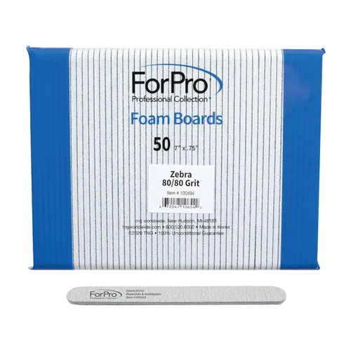 ForPro Professional Collection ForPro Zebra Tabla de Espuma, Grano 80/80, Lima de Uñas de Manicura de Doble Cara, 7 pulgadas L x 0.75 pulgadas A